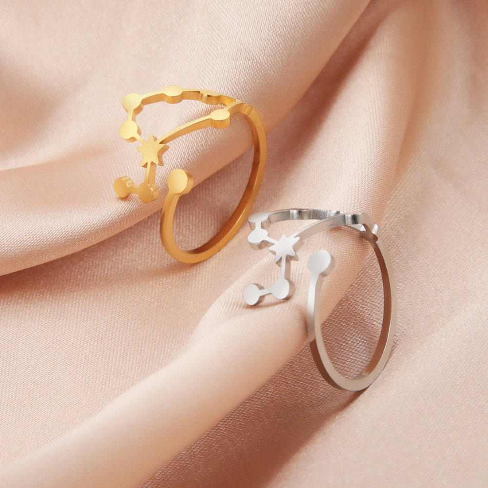 Discover the perfect blend of style and personalization with our Fashion Universal Personalized Stainless Steel Ring. This stunning ring features an open mouth design crafted from durable titanium steel, making it not only beautiful but also long-lasting. With its unique constellation shape, this ring is perfect for those who want to showcase their astrological sign in a chic and modern way.